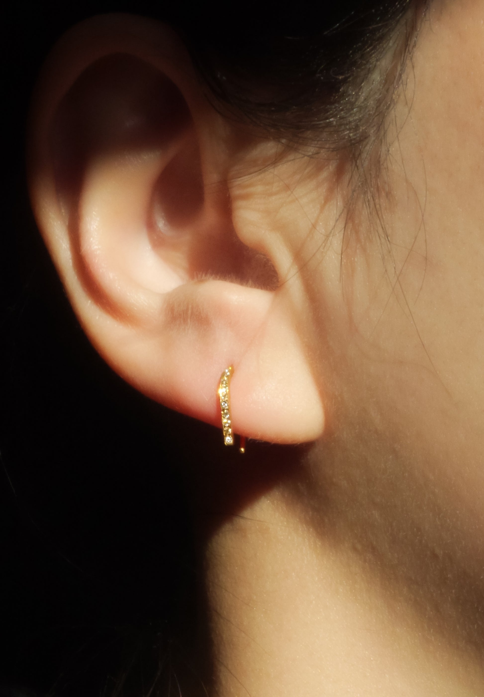 A version of the "Spartacus" earrings, designed with a horse's hoof motif, has a tiny diamond set on the side that faces forward when worn. The dignified appearance of the horseshoe and simple, sophisticated silhouette provide a sufficient hold just by passing it through the earlobe piercing hole. This is the ultimate minimalist item that can subtly create a luxurious atmosphere of K18 and diamonds.