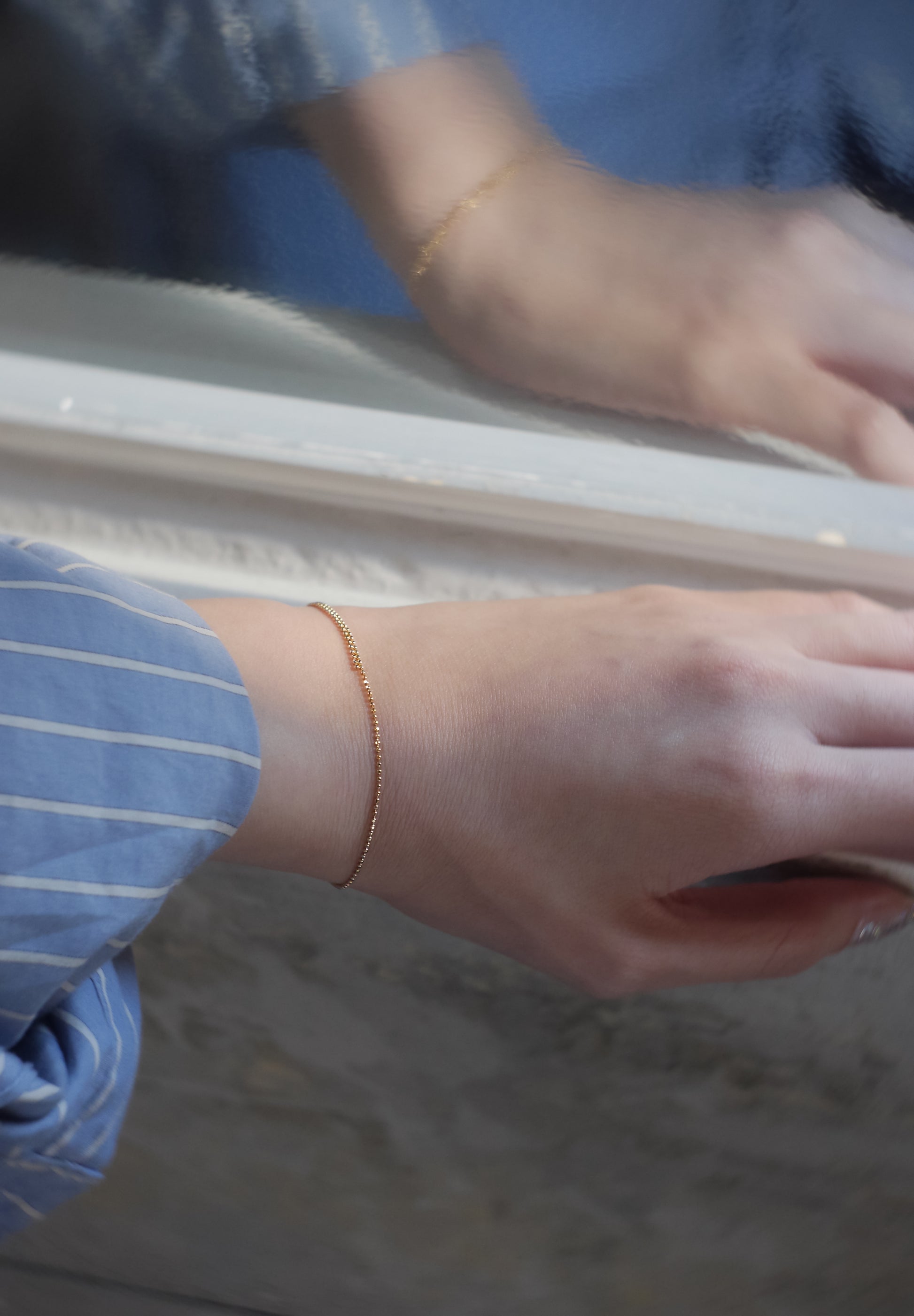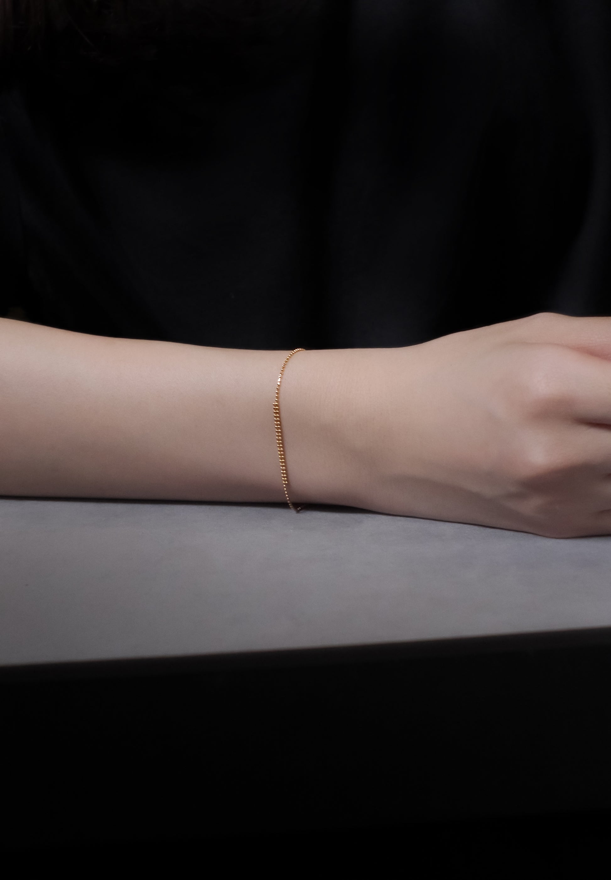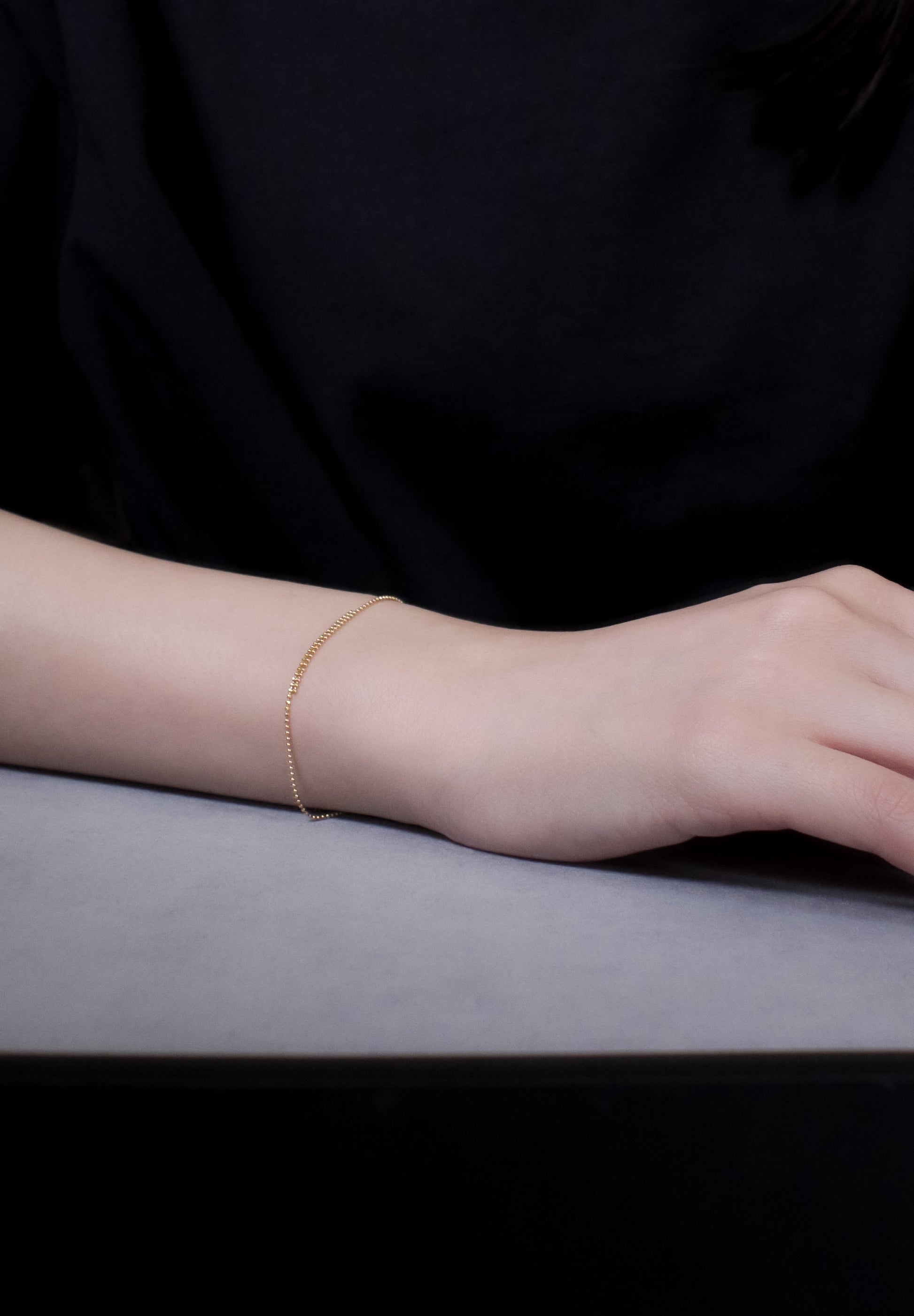 Overlapはチェーンを部分的に2本重ねた、極ミニマルなさりげない装飾のブレスレットです。