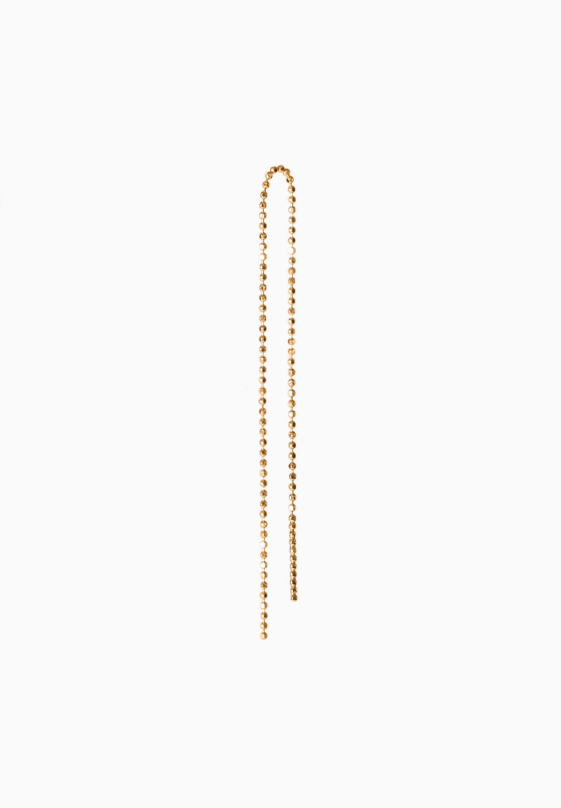 約1.0mmのボールカットチェーンが、房のように重なり、繋がり、美しいシルエットを形成しています。また、ボールチェーンを溶接し固める技術により、無駄を削ぎ落とした完全にミニマルなスタイルを実現させました。
