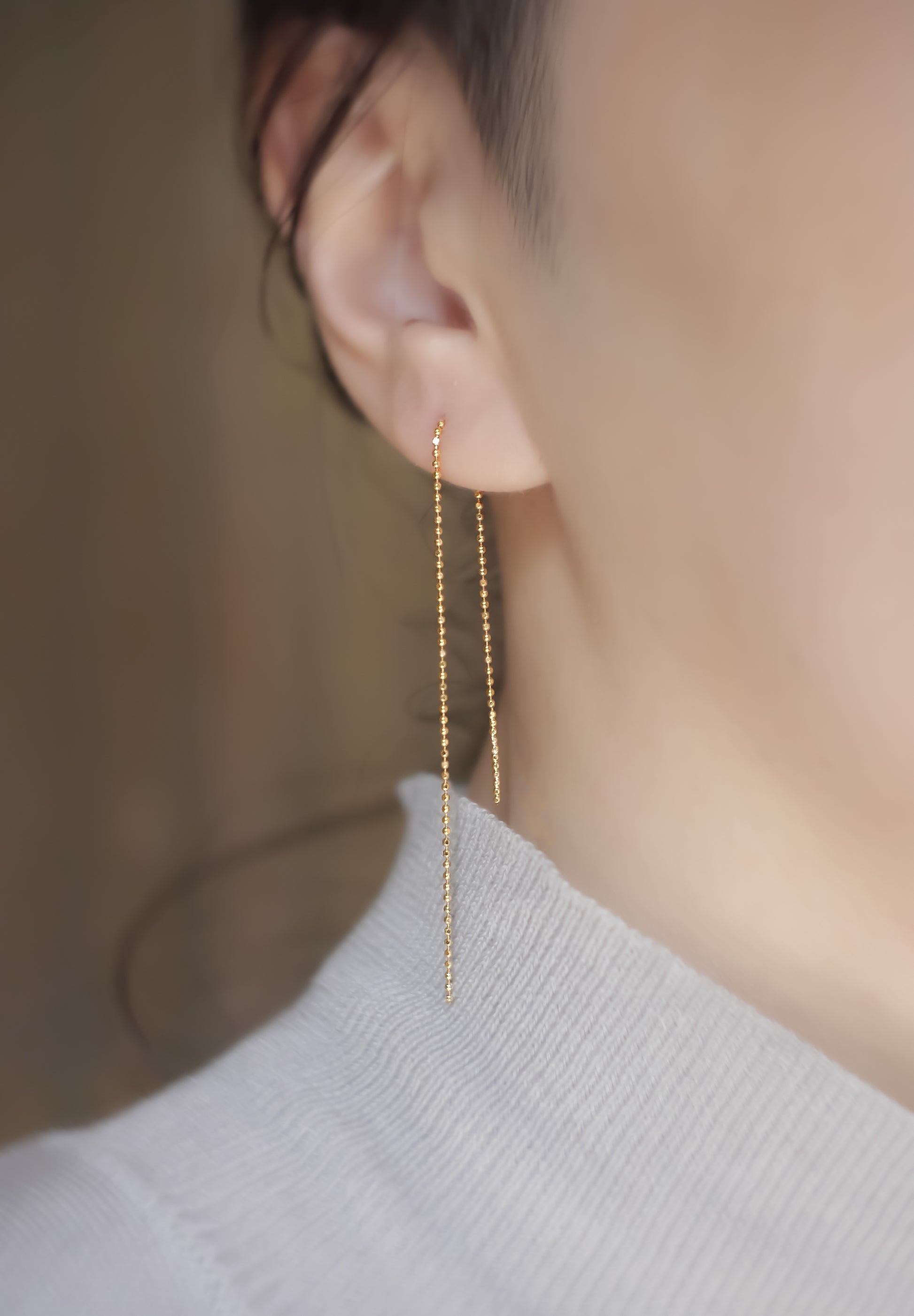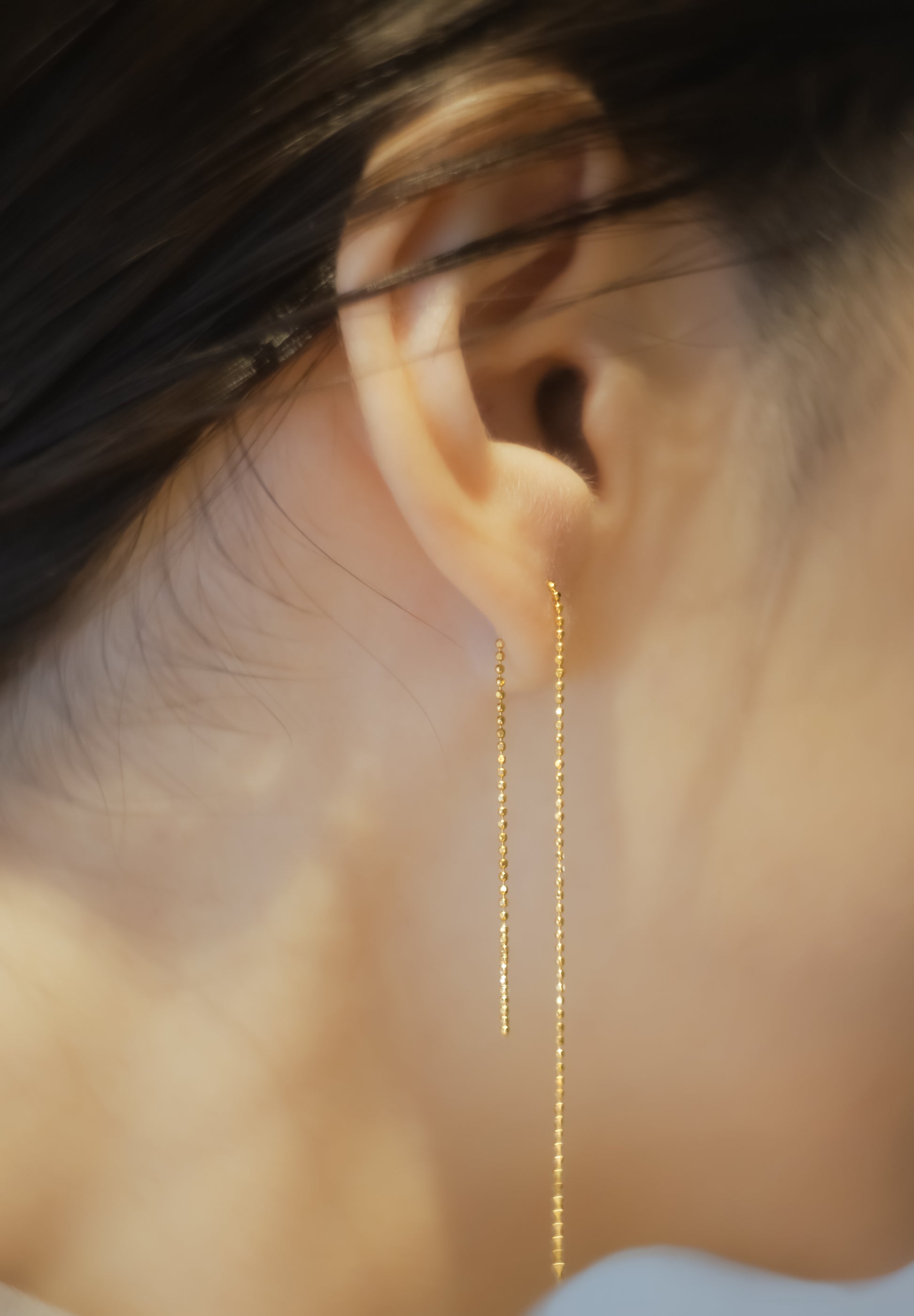 Minimalは名の通りClusterシリーズの中でも最もシンプルなアイテムです。1本のチェーンのみで形成された潔いデザインのピアスは、ペアはもちろん、片耳ずつ違うデザインのピアスと組み合わせても良くまとまります。