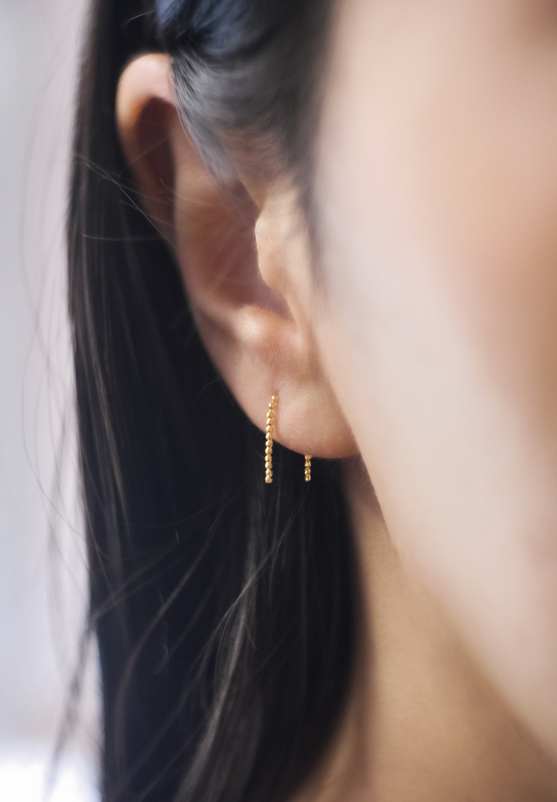 約1.0mmのボールカットチェーンが、房のように重なり、繋がり、美しいシルエットを形成しています。また、ボールチェーンを溶接し固める技術により、無駄を削ぎ落とした完全にミニマルなスタイルを実現させました。