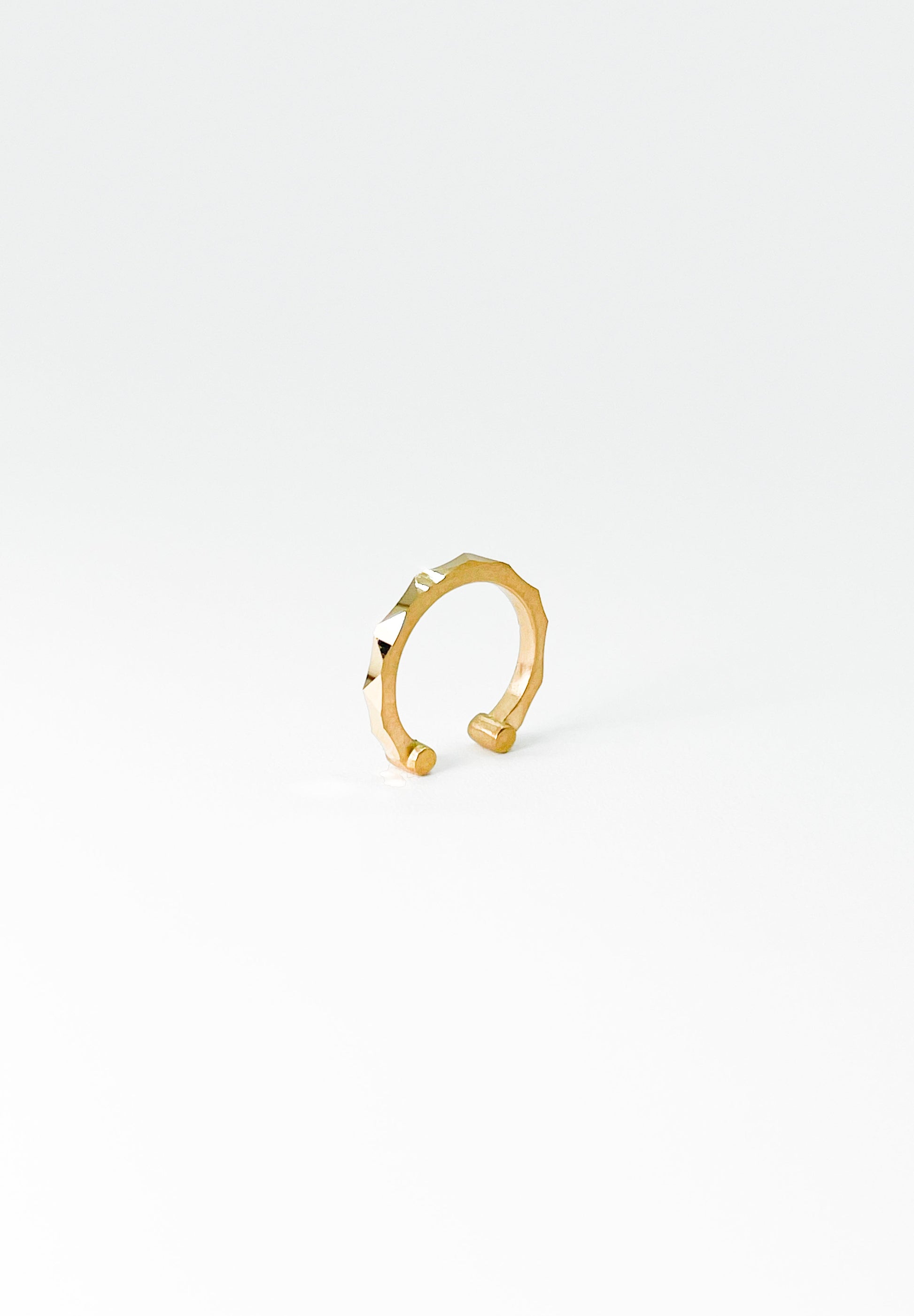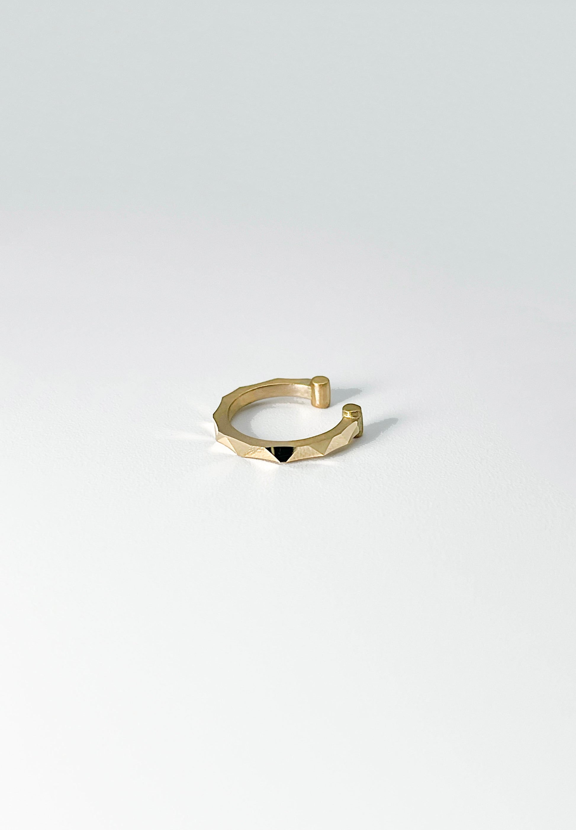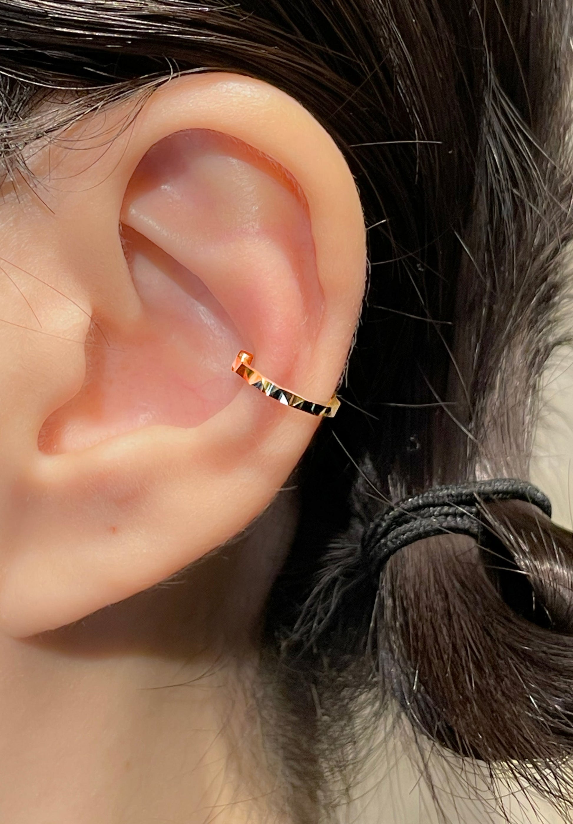 カッティングが入った部分は荒々しくもダイヤモンドのような輝きを放ちます。特殊な掘削機で彫刻しており、稀少な技術で作られたイヤーカフ。 Radioheadのアルバム『KID A』からインスピレーションを得たアイテムです。