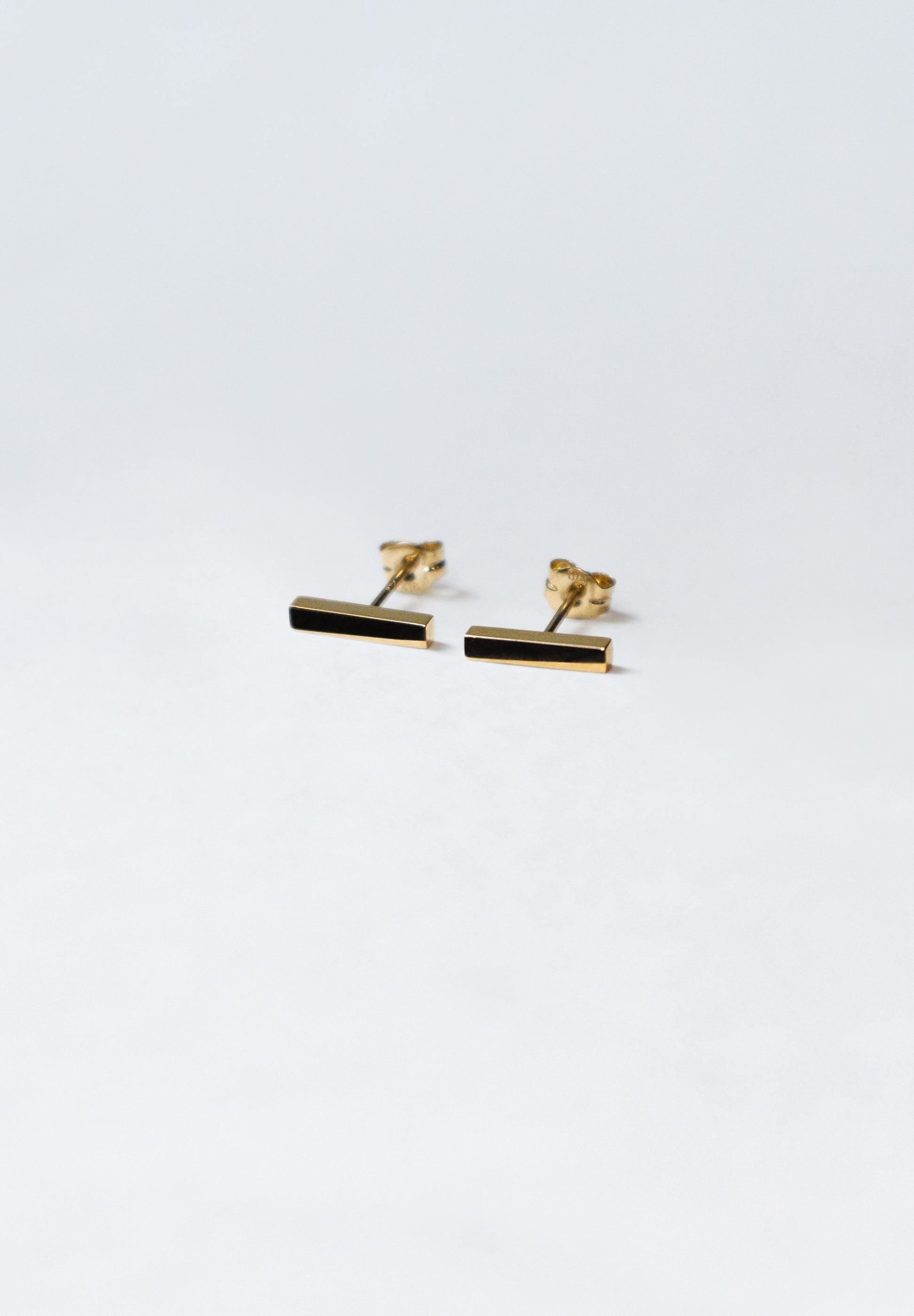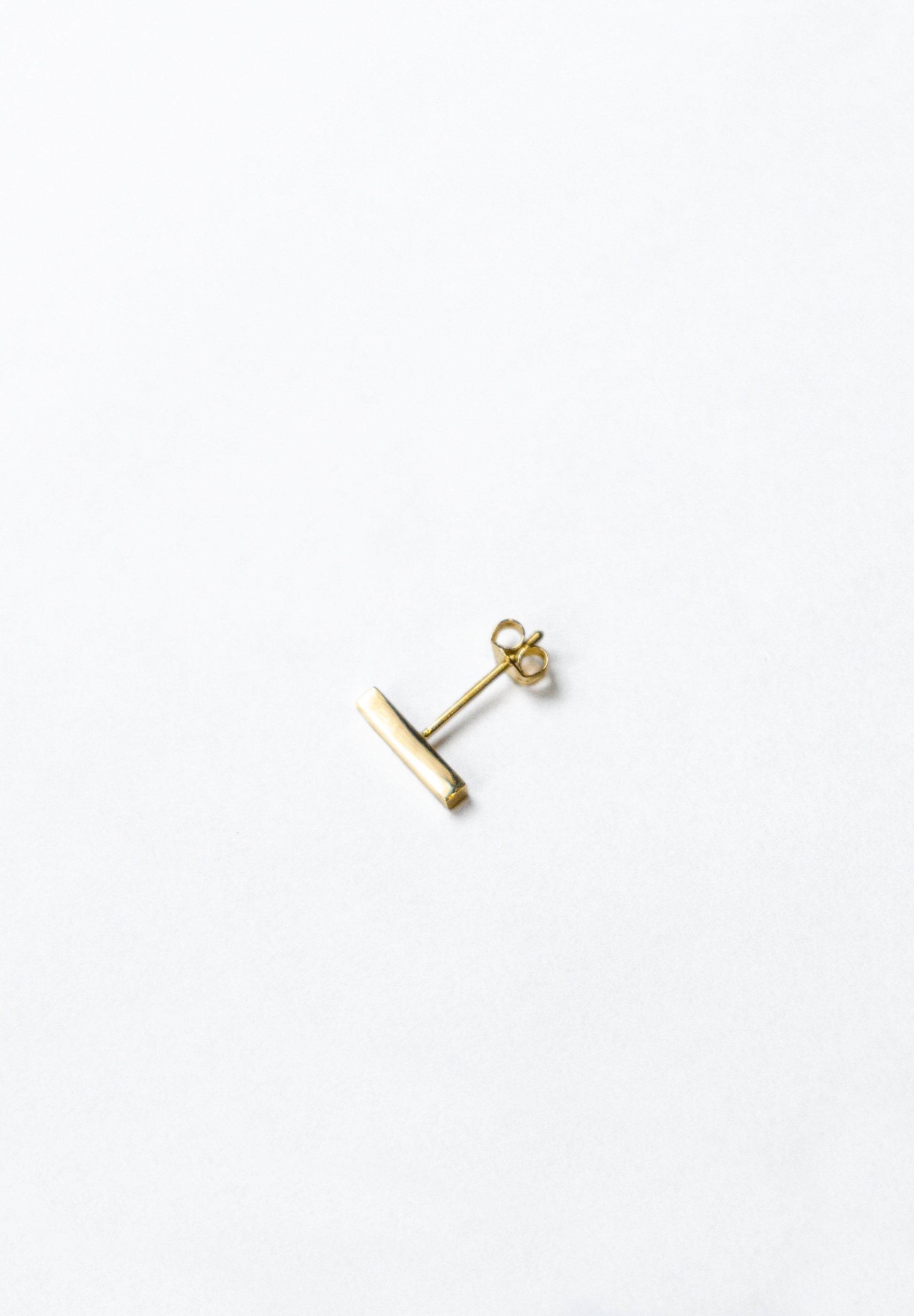 ミニマルなシルエットのK18のピアス。静かなデザインながら、直線が感じさせる凛々しさを備えた、どんなシーンにも合わせられるアイテム。