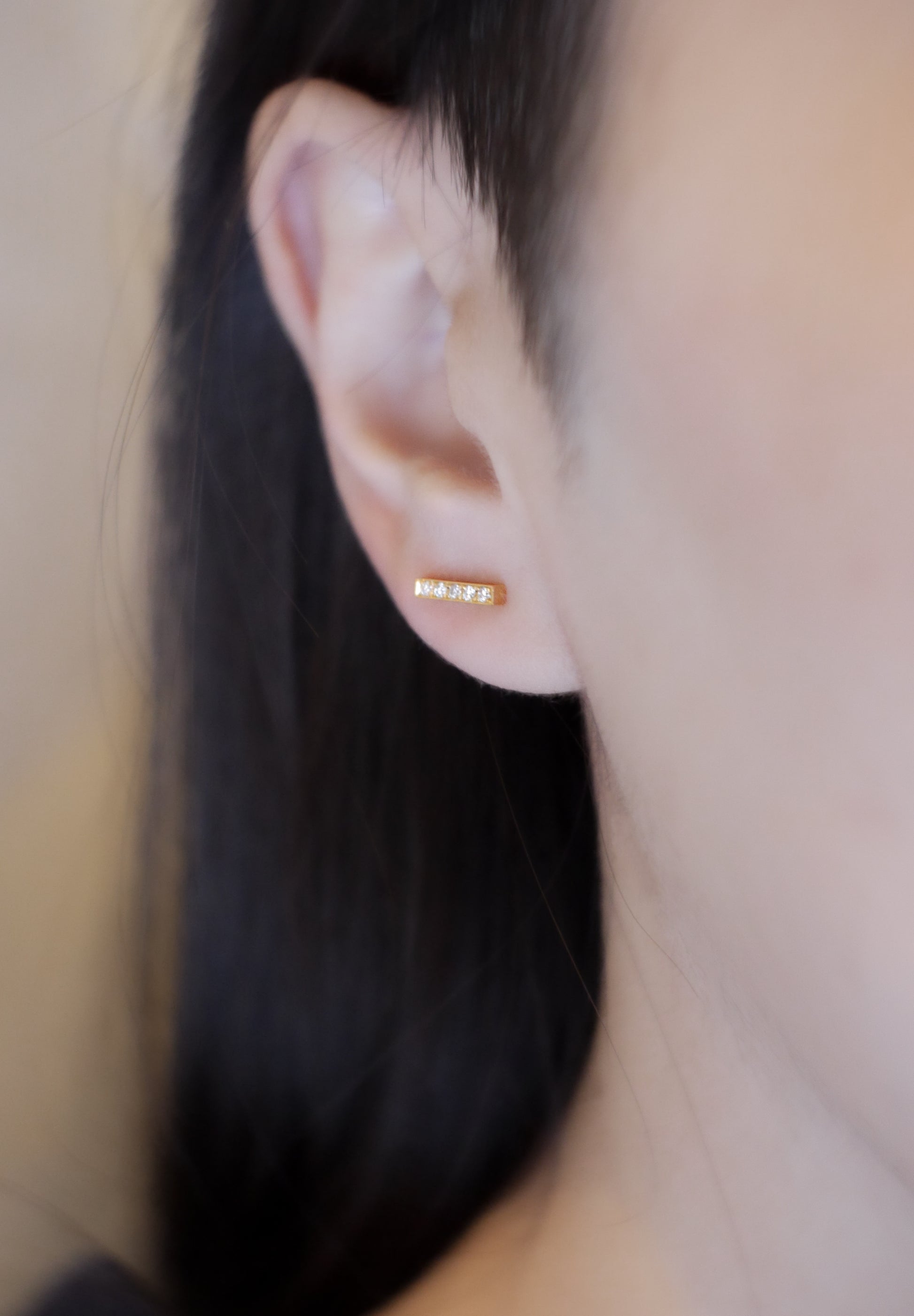 ミニマルなシルエットのダイヤモンドのピアス。静かなデザインながら、直線が感じさせる凛々しさを備えた、どんなシーンにも合わせられるアイテム。