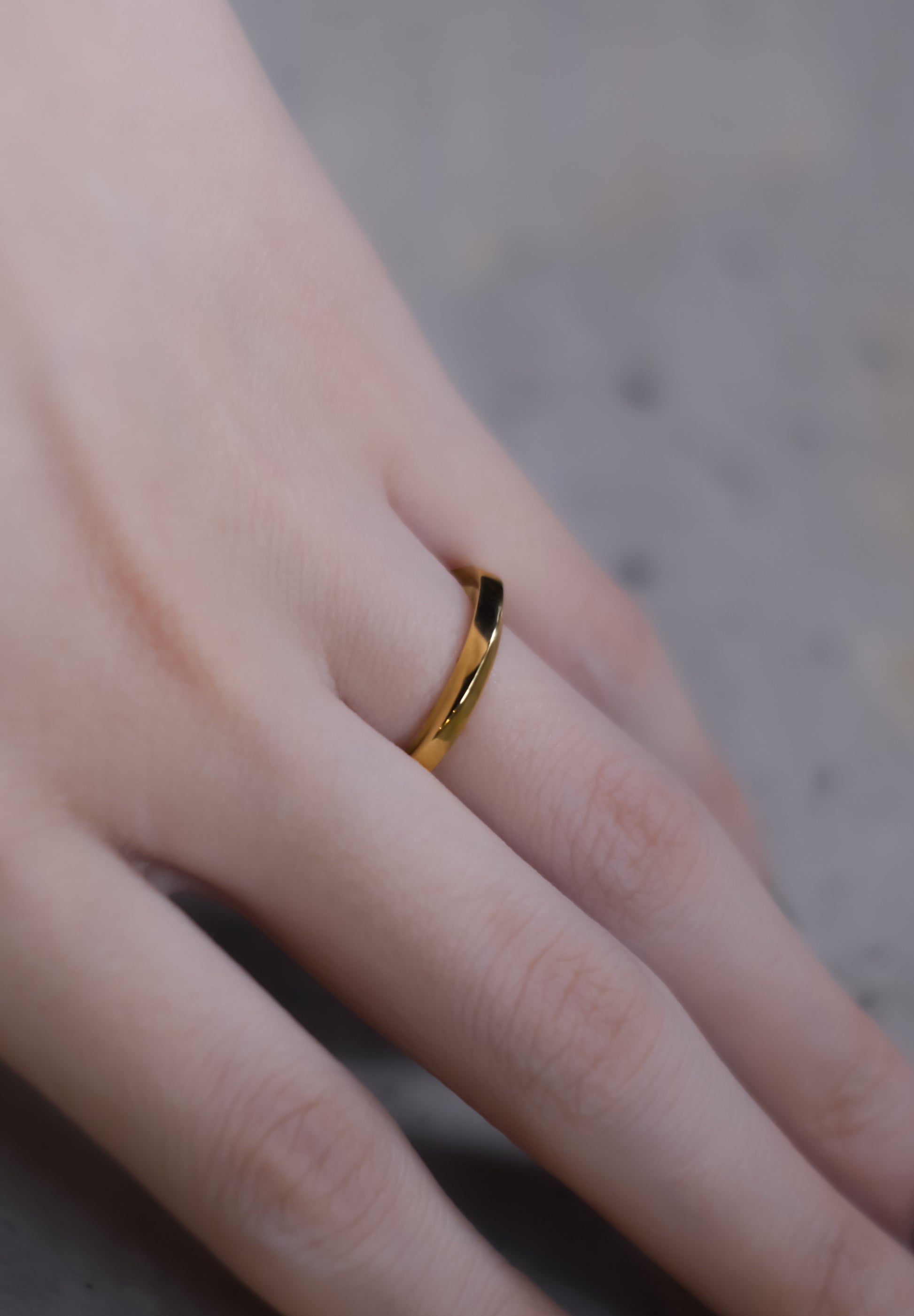 バラをイメージし、花びらを抽象化した詩的なリング。花弁のような流線形が、滑らかで有機的なシルエットを描きます。