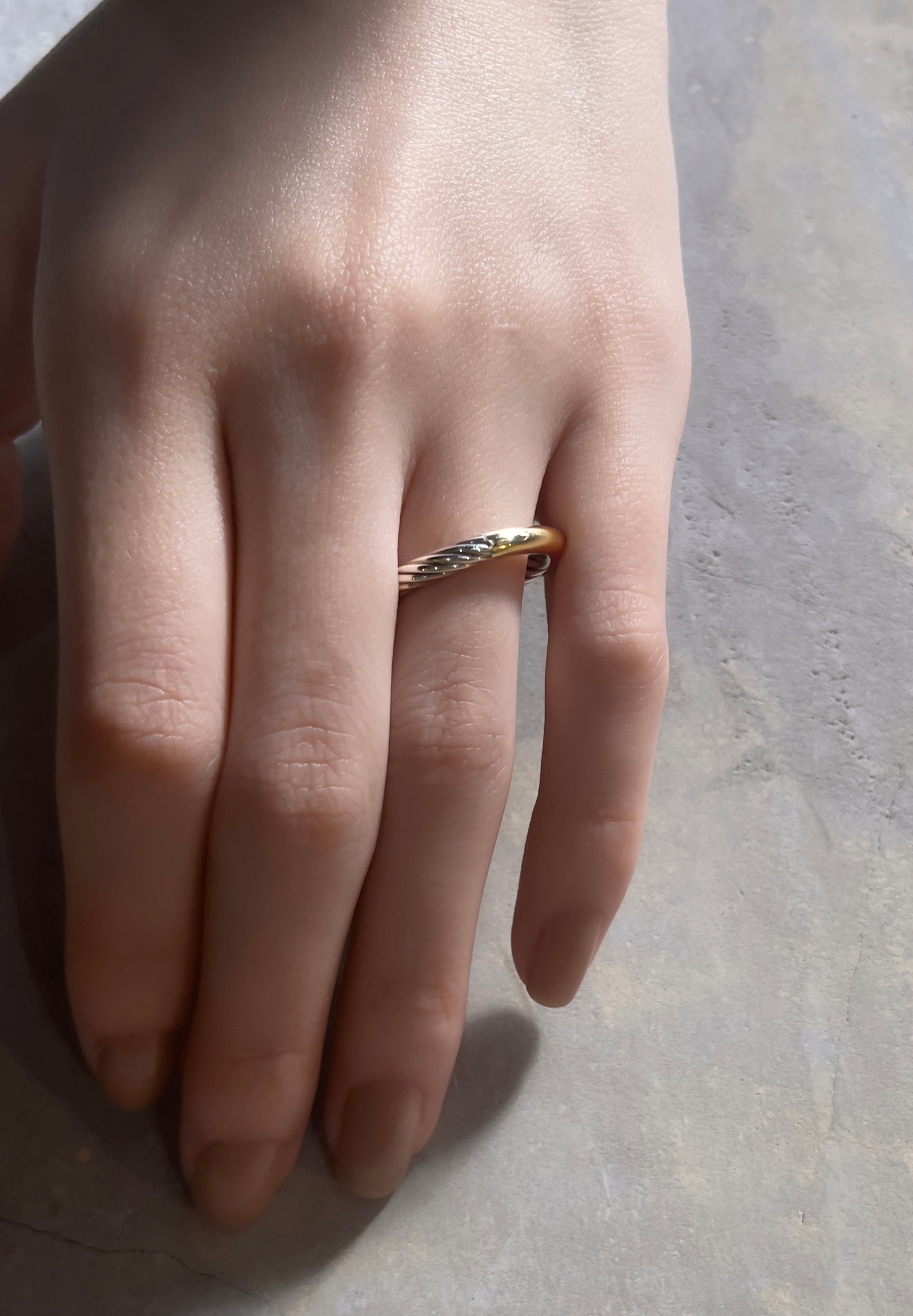 A ring made of twisted sterling silver wire and a mirrored 18 carat yellow gold ring. The contrast of materials and details is impressive. The decorativeness of the twisted parts gives a minimal yet solemn feel, and the glossy K18 mirror surface. A ring inspired by the paintings of painter Caravaggio. This item is also recommended as a wedding ring or pairing ring.