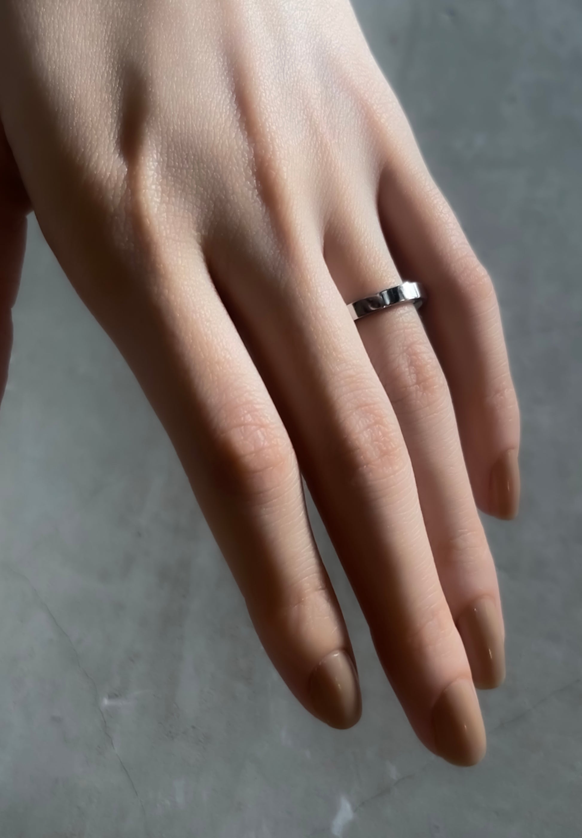 HIDDEN PLACE is an item compatible with wedding rings. The outside is a beautiful flat surface with no clouds, and the inside is gently rounded, making it an incredibly comfortable ring to wear. The design has a beautiful contrast between the outside and inside, with a calming atmosphere.