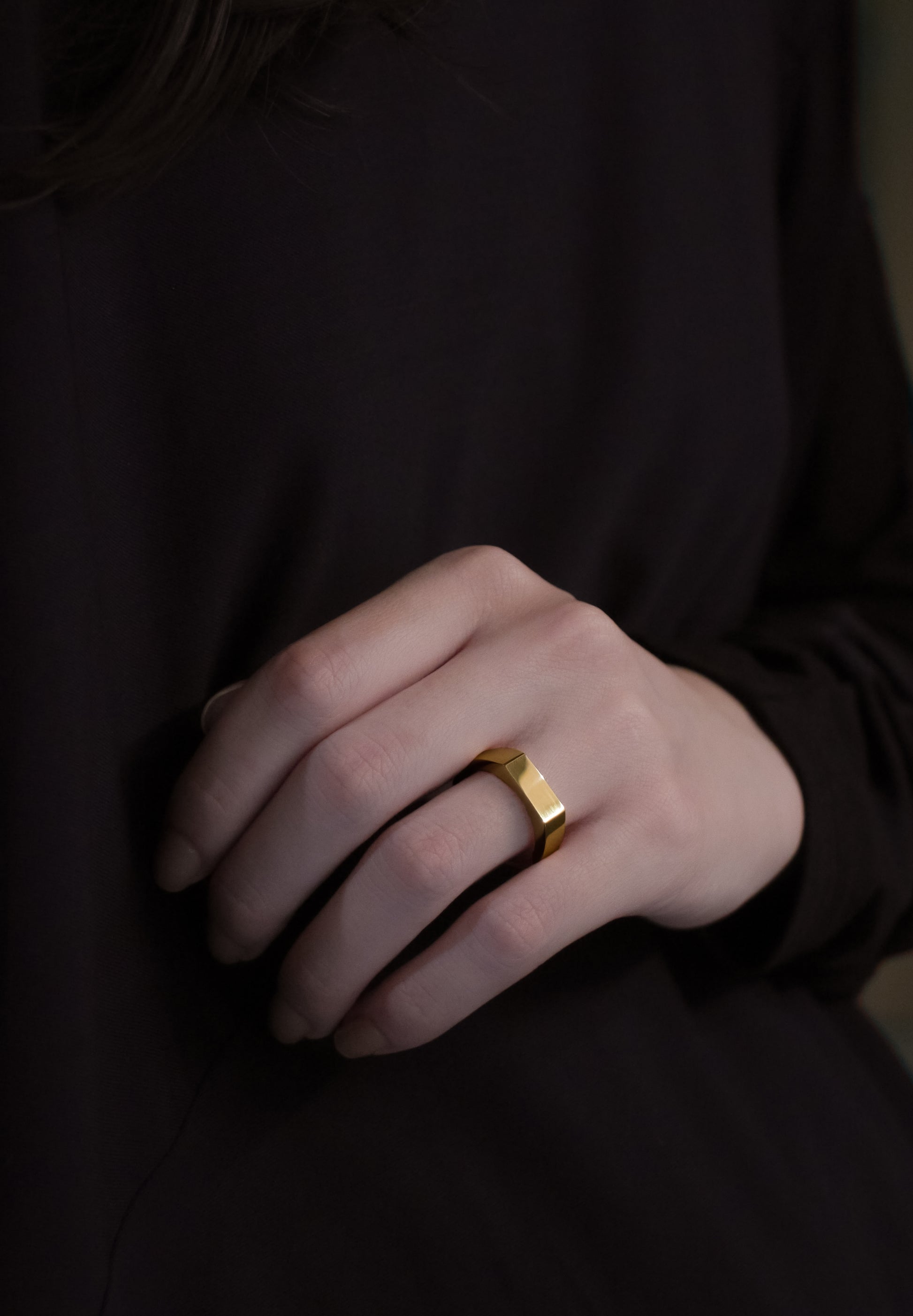 Wedding band ring "KNIGHTSBRIDGE" (Knightsbridge). It has a sophisticated form reminiscent of a knight's figure and a solid volume that resembles a bridge over a river. A ring with a clean, neat shape and a dignified atmosphere gives you a feeling of special and magnificent power just by being there.