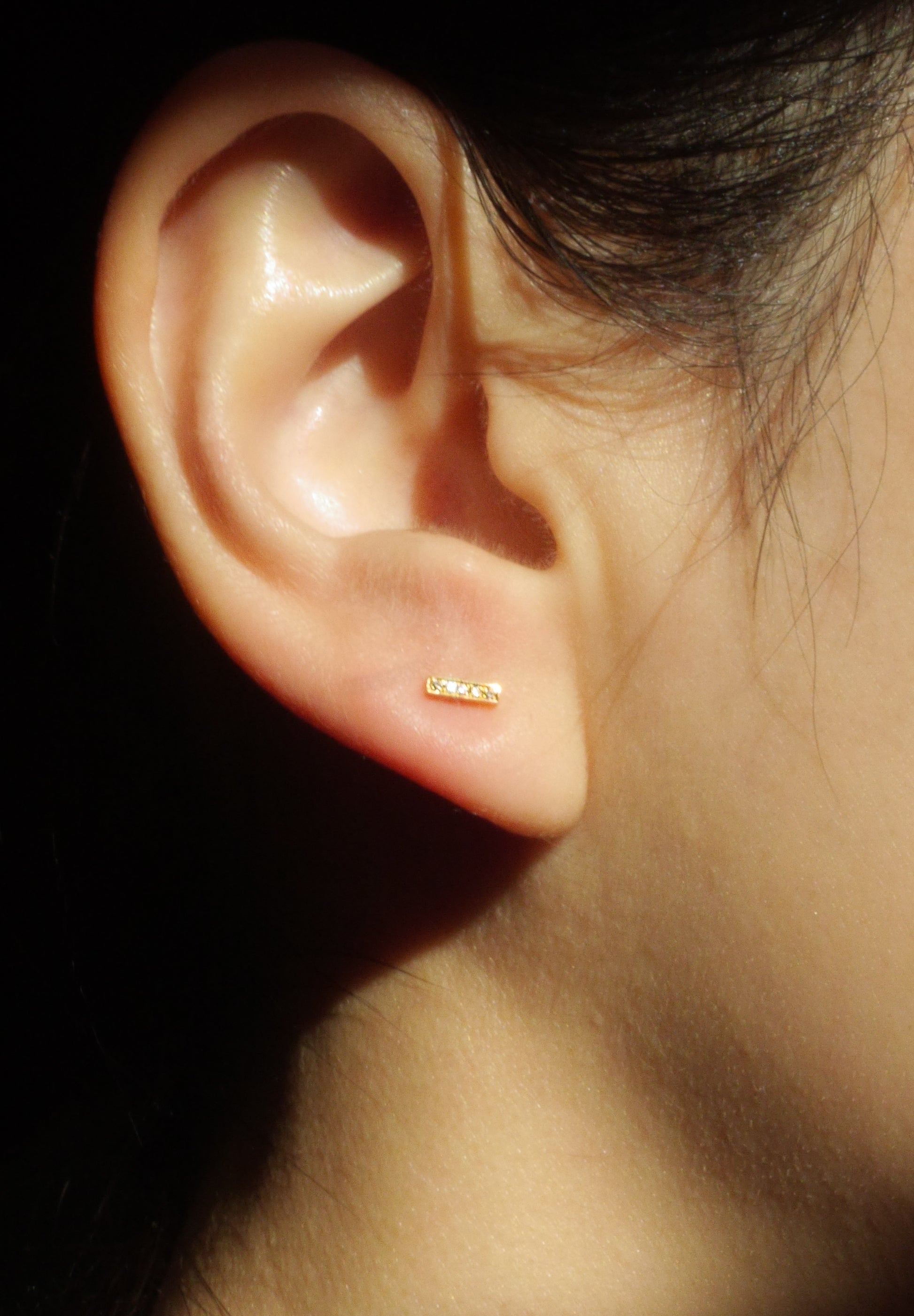Diamond earrings with a minimalist silhouette. Although it has a quiet design, it has a dignified straight line that makes it suitable for any occasion.